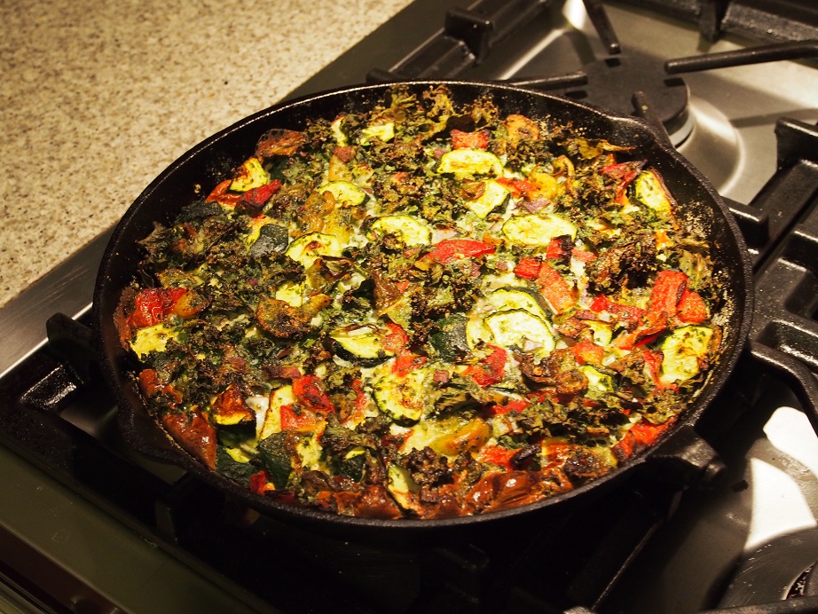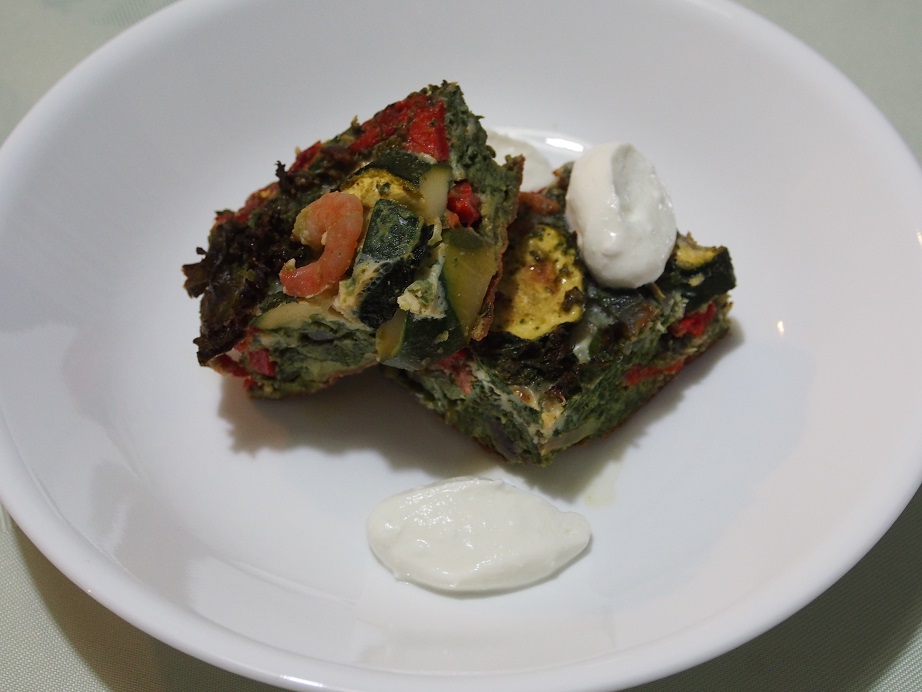 I love Kale because it is a very challenging ingredient to cook. As Kale is best complimented by poducts rich in iodine, I searched the web to compile a list of such products. This is a short list: seafood, sea vegetables, asparagus, carrots, tomatoes, mushrooms, and egg yolks. The idea behind this Kale Fritata recipe was to create a dish with lots of Kale and lots of iodine containing products.