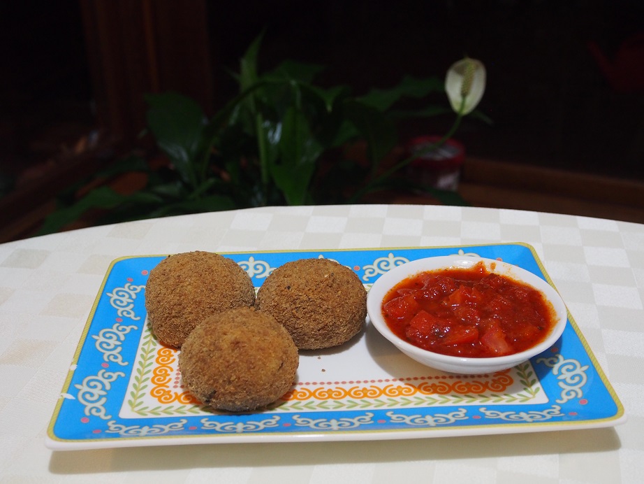 In Italian Arancini mean “Little Oranges”. Although, in some regions of Italy Arancini have conical shape, and in others – they are called just “Rice Balls”. I love Arancini, and the results of experimenting with Quinoa are below.