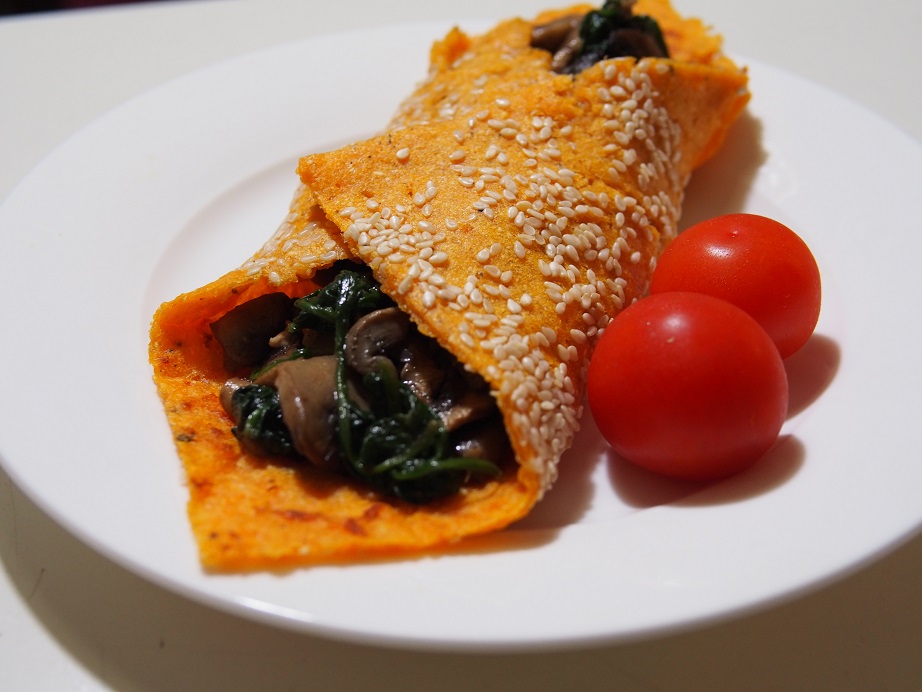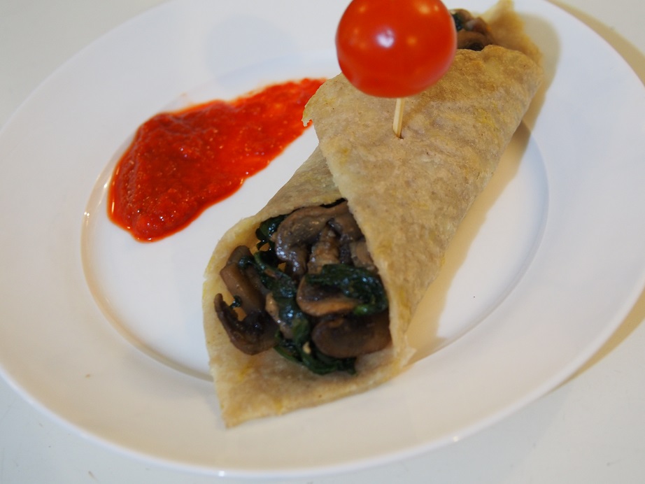Often when I have passed flat bread and wraps on the supermarket shelf I have had to make an effort not to stop. Now I make my own healthy wraps! And I am loving it. The recipe has so much potential, you can use it in many different ways with different fillings. It can be also used for pies, especially if you are a fan of pot pies. Just imagine a chicken and mushroom pot pie topped with a parsnip top!