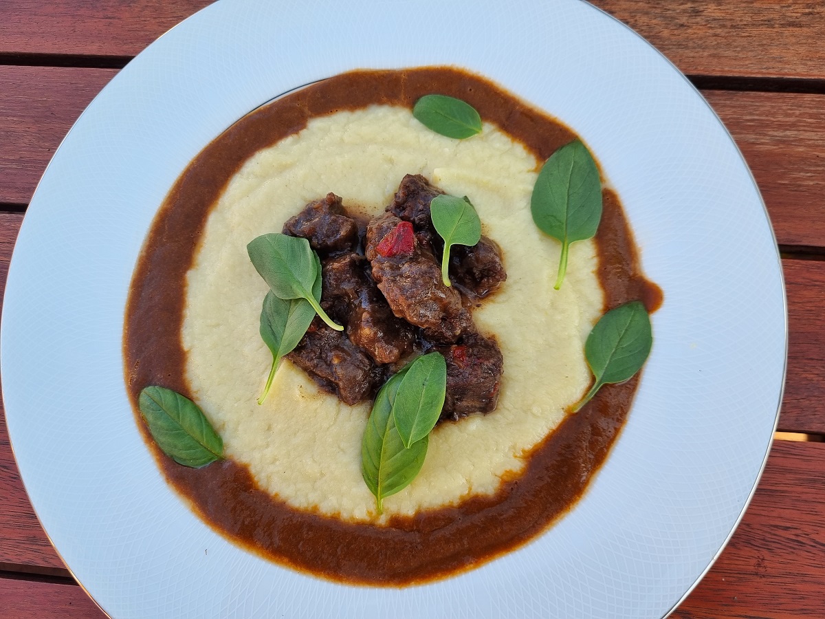 This recipe has the classic slow braising technique but we are not using celery or carrots. Suggested ingredients and method will reward you with the full flavour of beef cheeks. We are serving them over cauliflower puree. However, any other neutral vegetable can be used for the puree.