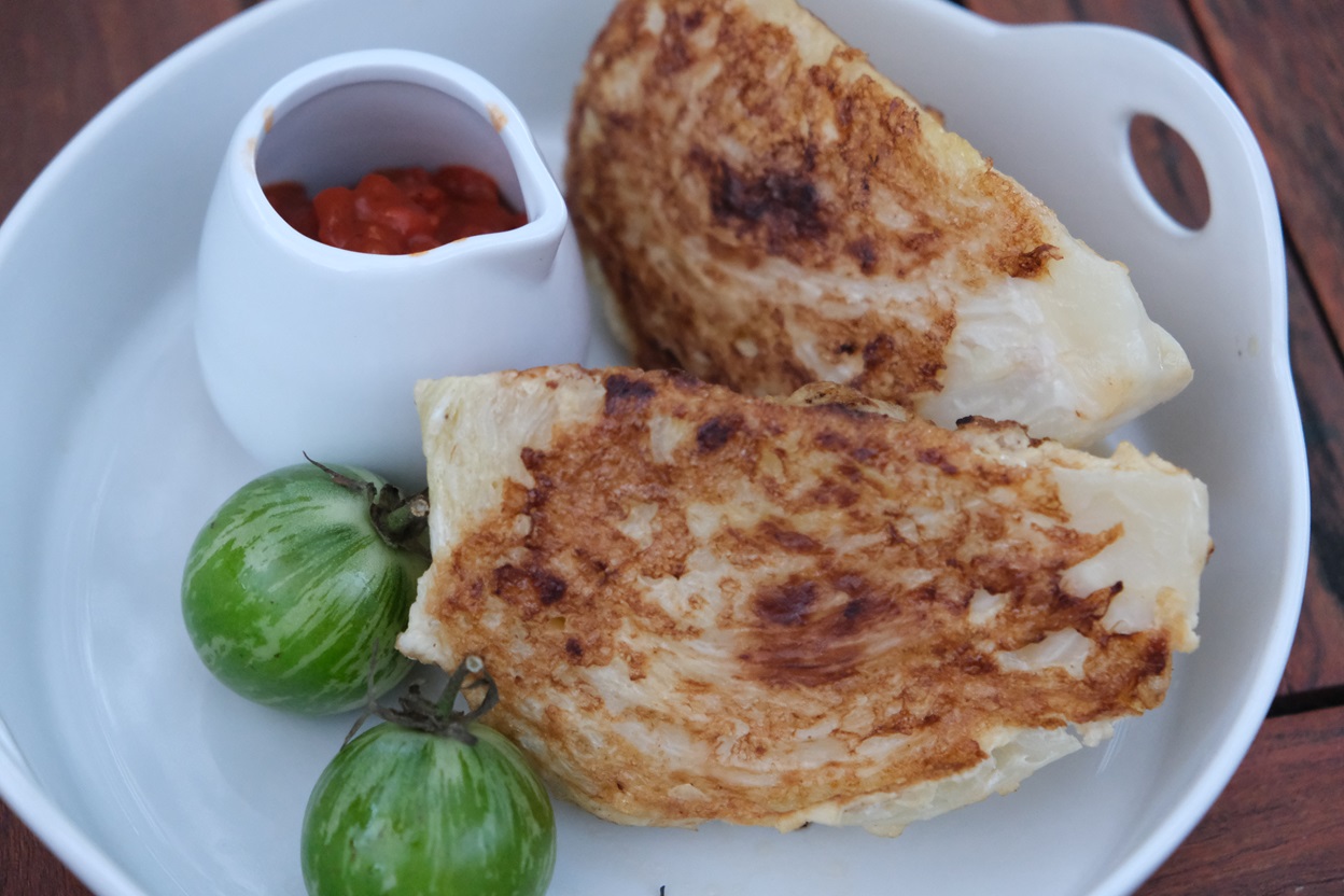 - Using tongs dip each wedge in the beaten eggs and fry in oil over medium heat each side for 3 minutes. At the last turning over the cabbages, pour any leftover eggs into the pan.