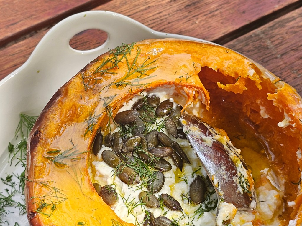 This baked pumpkin dish is a beautiful mix of rustic charm and rich flavour. The natural sweetness of pumpkin pairs perfectly with creamy goat cheese, smoky paprika, and crunchy seeds, all finished with a splash of olive oil and fresh herbs. It’s simple enough for a cosy lunch or dinner yet striking enough to serve as a festive centrepiece.