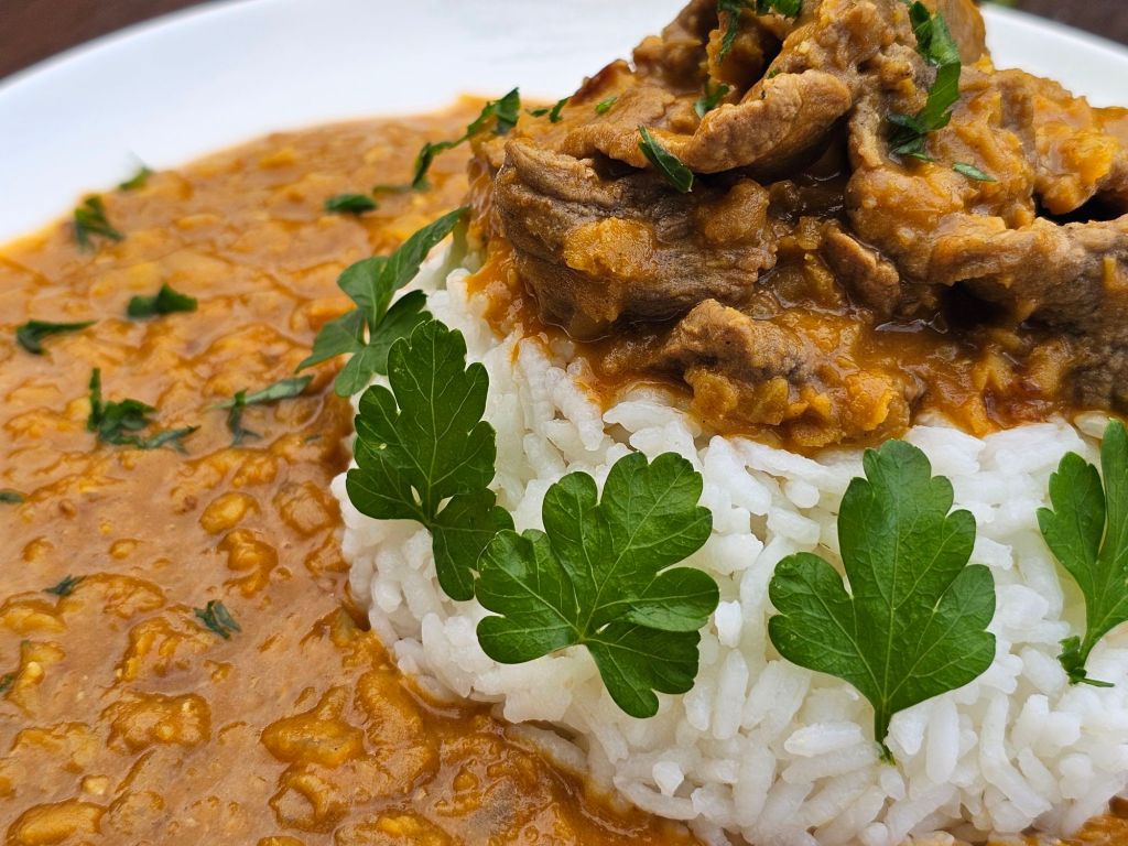 - When served, add fresh coriander over the curry. Serve with steamed rice.
